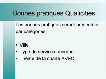 Title: Bonnes pratiques Qualicities