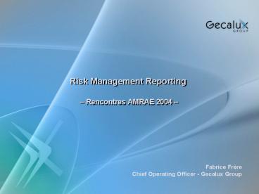 Title: Risk Management Reporting Rencontres AMRAE 2004