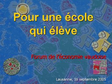 • ? Lécole, lieu de vie (la culture est élitiste).
