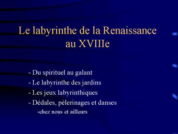 Le labyrinthe de la Renaissance au XVIIIe PowerPoint PPT Presentation