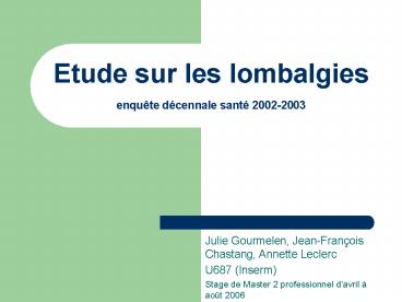 Etude sur les lombalgies enqute dcennale sant 20022003 PowerPoint PPT Presentation