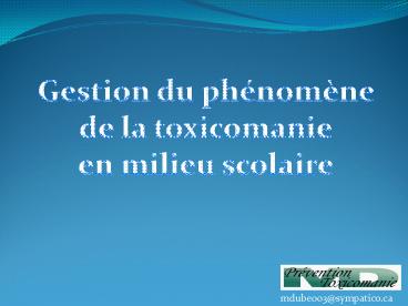 Approches et gestion du phnomne toxicomanie en milieu scolaire PowerPoint PPT Presentation