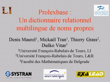 Denis Maurel1, Micka l Tran1, Thierry Grass2, Du ko Vitas3 ... Alignement de textes multilingues. Correction d'orthographe... Pour ces applications, il ... – PowerPoint PPT presentation