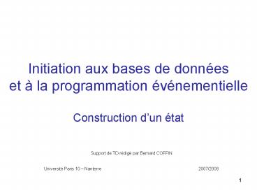 Title: Initiation aux bases de donnes et la programmation vnementielle