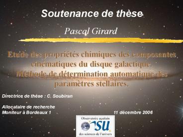 Directrice de thèse C. Soubiran Allocataire de