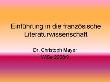 Einfhrung in die franzsische Literaturwissenschaft PowerPoint PPT Presentation