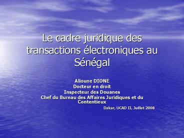 Title: Le cadre juridique des transactions lectroniques au Sngal