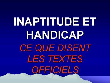 l'inaptitude. Décret n 88-977 du 11 octobre