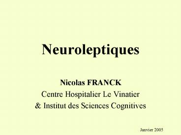 adrénolytique et extrapyramidal) - Deniker et Ginester (1976) quatre catégories de