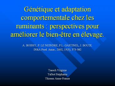 • Boissy A., Le Neindre P., Gastinel P.L., Bouix
