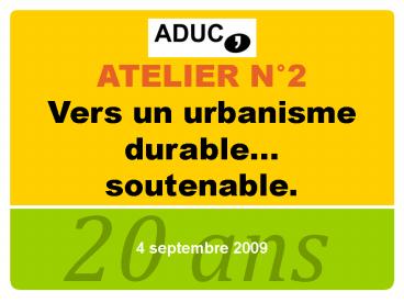 Title: ATELIER N2 Vers un urbanisme durable soutenable'