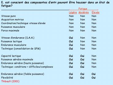 - Endurance aérobie (haute puissance) Oui Oui Non