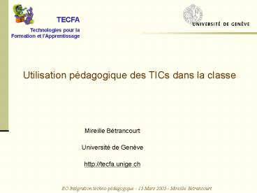TECFA Technologies pour la Formation et