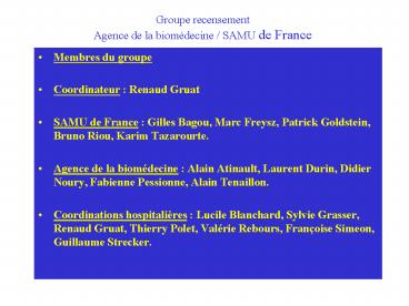 Title: Groupe recensement Agence de la biomdecine SAMU de France