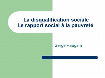 la construction sociale de la pauvreté - Les processus conduisant à la désignation et à