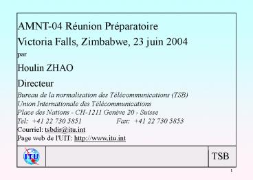 41 22 730 5853 Courriel tsbdir_at_itu.int Page web