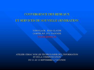 Title: CONVERGENCE DES RESEAUX ET SERVICES DE NOUVELLE GENERATION