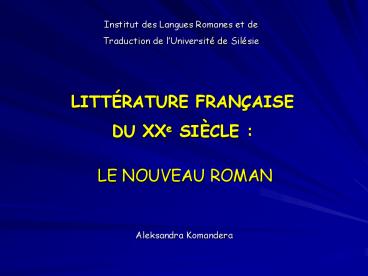 1LITTÉRATURE FRANÇAISEDU XXe SIÈCLE