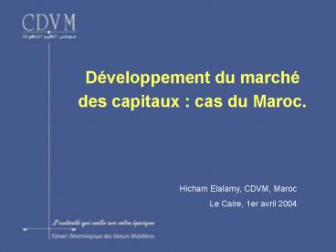 Title: Dveloppement du march des capitaux: cas du Maroc'