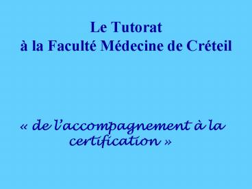 Title: Le Tutorat la Facult Mdecine de Crteil