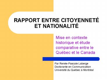 <Notice: Removed> RAPPORT ENTRE CITOYENNET PowerPoint PPT Presentation