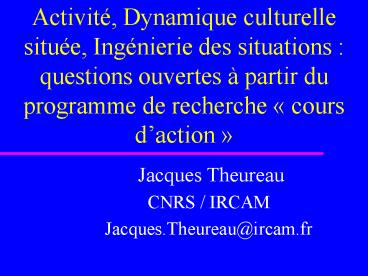 réflexions situées ? - Dynamique culturelle dans l activité effective ?