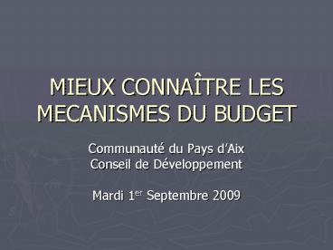 Title: MIEUX CONNATRE LES MECANISMES DU BUDGET