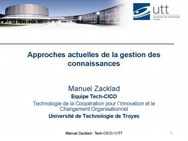 Title: Approches actuelles de la gestion des connaissances