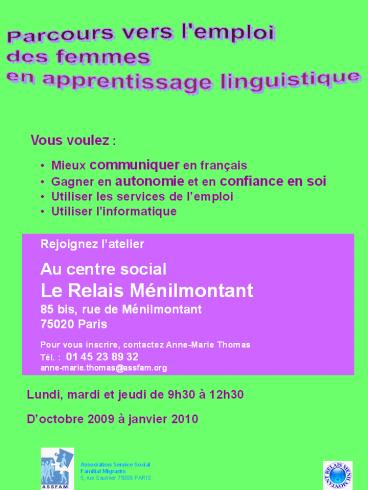 Rejoignez latelier Au centre social Le Relais