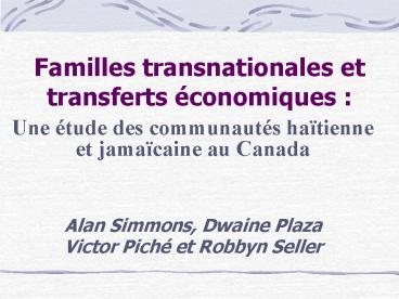 Title: Familles transnationales et transferts conomiques :