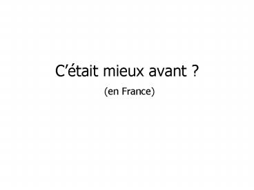 Cétait mieux avant ? (en France)