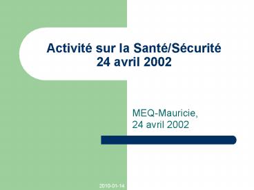 Activit sur la SantScurit 24 avril 2002 PowerPoint PPT Presentation