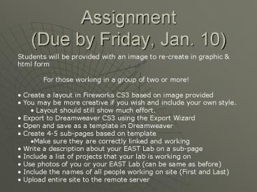Assignment (Due by Friday, Jan. 10) PowerPoint PPT Presentation