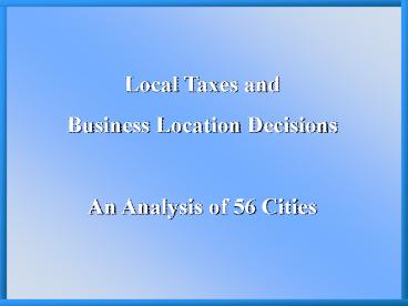 1Local Taxes and Business Location Decisions An
