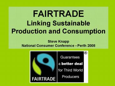 of Fairtrade standards - Consumers recognise Fairtrade Certified products