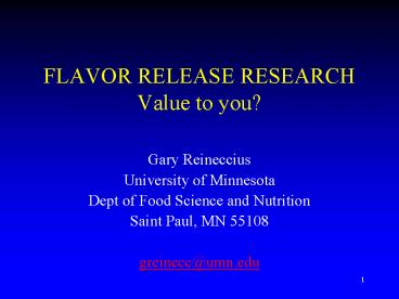 Title: FLAVOR RELEASE RESEARCH Value to you