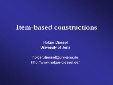 <Notice: Removed> Item-based constructions PowerPoint PPT Presentation