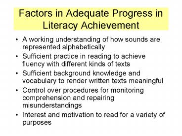 Factors in Adequate Progress in Literacy Achievement PowerPoint PPT Presentation