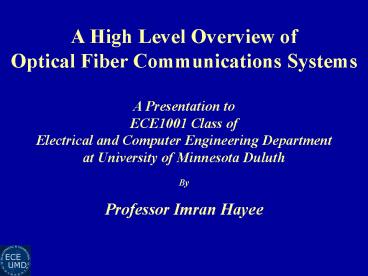 Communications Systems A Presentation to ECE1001