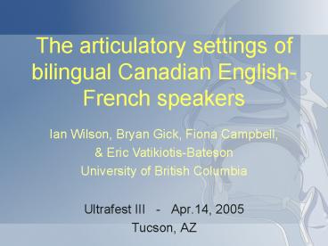 Title: The articulatory settings of bilingual Canadian EnglishFrench speakers