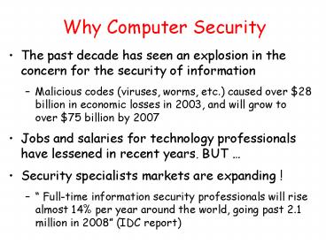 Title: Why Computer Security