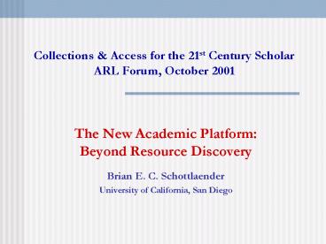 ScholarARL Forum, October 2001
