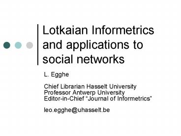 new journal - L. Egghe. General evolutionary theory of IPPs