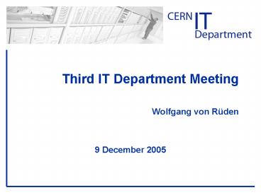 Title: Third IT Department Meeting Wolfgang von Rden