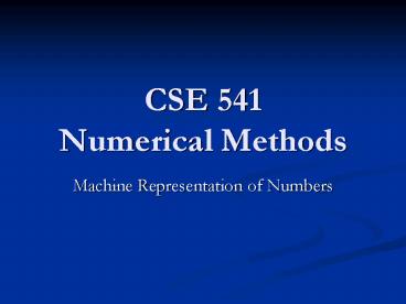CSE 541 Numerical Methods PowerPoint PPT Presentation