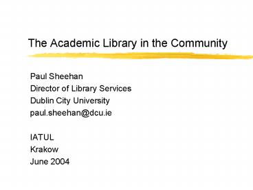 <Notice: Removed> The Academic Library in the Community PowerPoint PPT Presentation