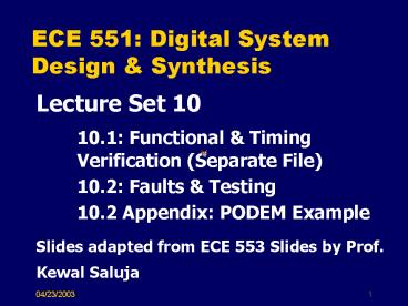 <Notice: Removed> ECE 601 - Digital System Design PowerPoint PPT Presentation
