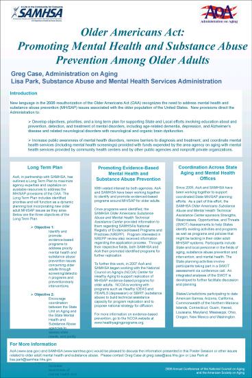 For More Information AoA (www.aoa.gov) and SAMHSA