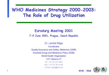 Eurodurg Meeting 2001 7-9 June 2001, Prague,