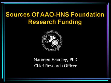 Sources Of AAO-HNS Foundation Research Funding PowerPoint PPT Presentation